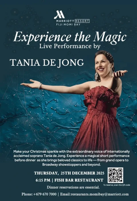 Make your Christmas sparkle with the extraordinary voice of internationally acclaimed soprano Tania de Jong. Experience a magical short performance before dinner as she brings beloved classics to life — from grand opera to Broadway showstoppers and beyond.